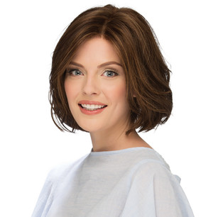 Montecito by BelleTress is a stylish short bob with a chin-length cut and side-swept bangs. It features a smooth and sleek texture. The design provides a playful yet sophisticated look, perfect for everyday wear or special occasions. She is part of BelleTress' City Collection, known for its versatility and comfort, featuring heat-friendly synthetic hair, an extended lace front for a seamless hairline, and a monofilament part for a realistic appearance.